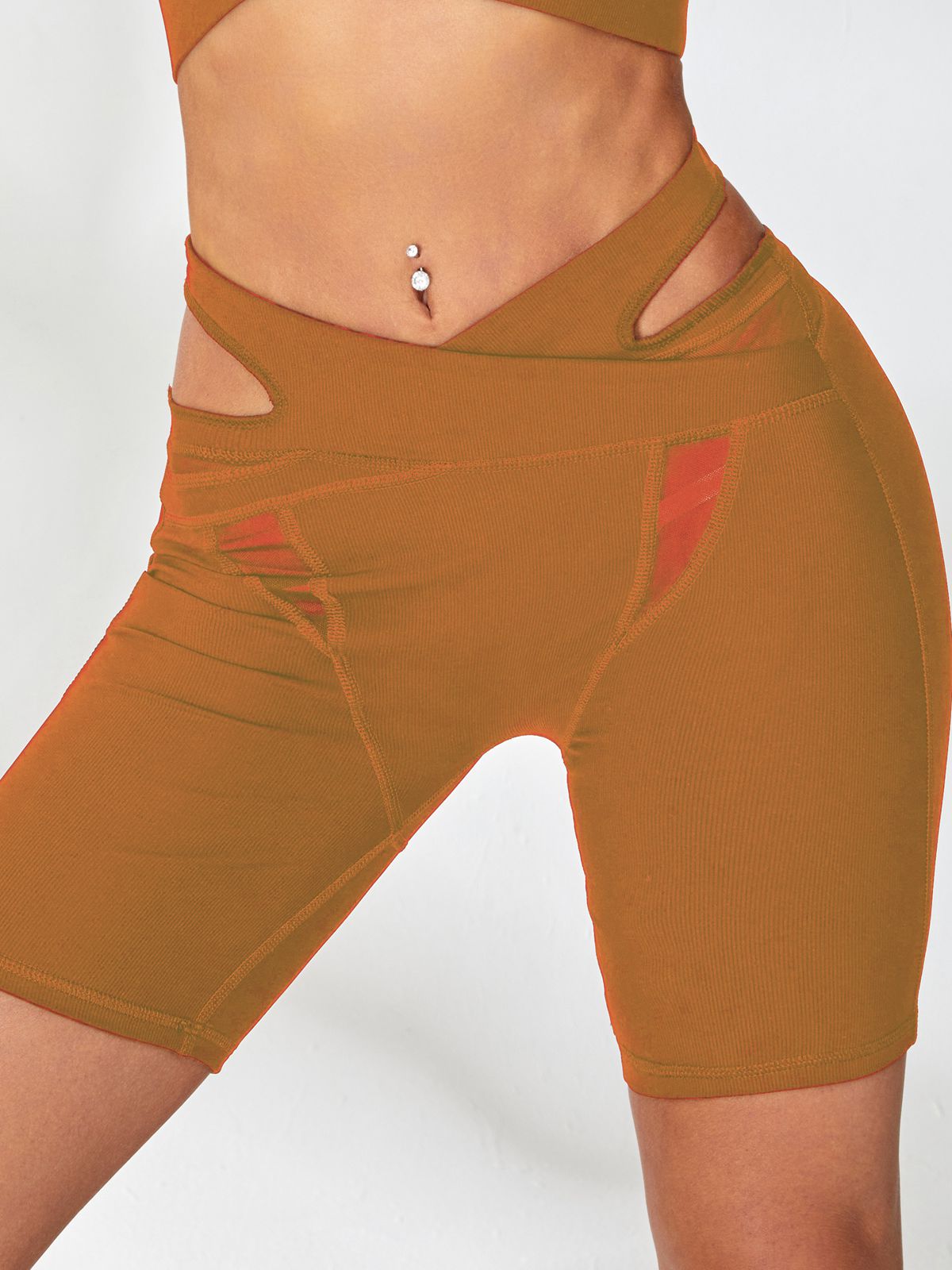 ZASUWA Female Ribbed Cutout Mesh Spandex Gym Booty Shorts