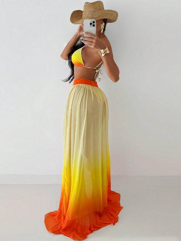 ZASUWA Female Gradient Contrast Color Flounce Mesh 3-Pieces Bikini Set