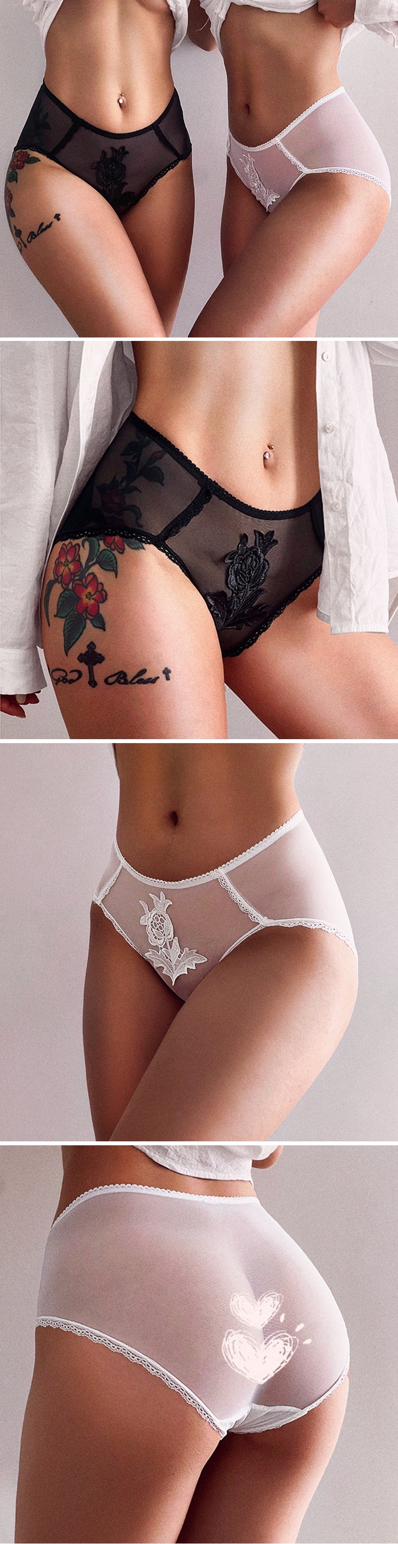 ZASUWA Female RoseTembroidery Breathble Mesh Lace Panties